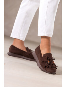 Estro: Ciemnobrązowe mokasyny damskie z weluru naturalnego