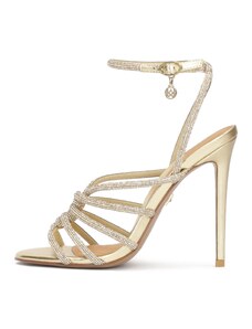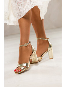 Złote sandały damskie na słupku z zakrytą piętą pasek wokół kostki paski na krzyż Carla N474K