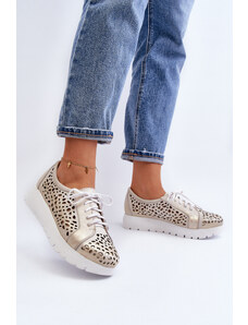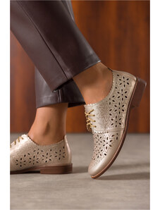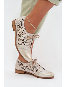 Złote półbuty skórzane damskie płaskie ażurowe sznurowane PRODUKT POLSKI Casu 5843-SLTO H