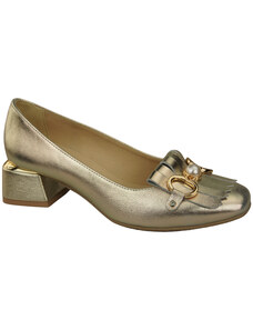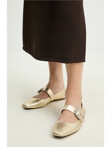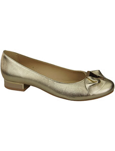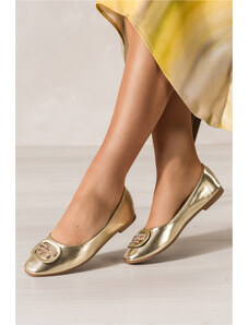Złote baleriny damskie brokatowe na ozdobnym niskim obcasie skórzana wkładka Carla M530P