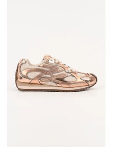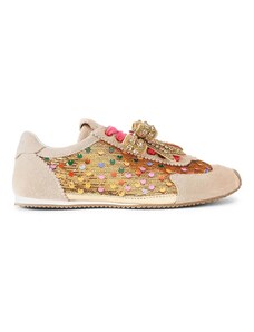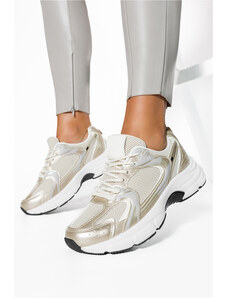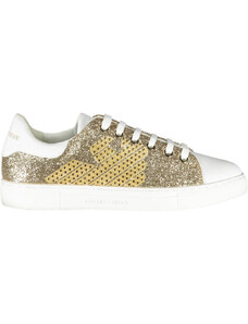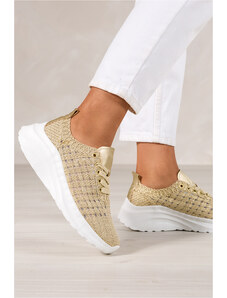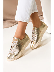Złote sneakersy damskie buty sportowe ażurowe z elastyczną żłobioną podeszwą sznurowane Carla MD7588-3