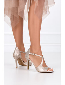 Złote sandały skórzane damskie szpilki t-bar z zakrytą piętą PRODUKT POLSKI Casu 2881-832