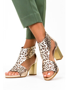 Szampańskie sandały skórzane damskie zabudowane ażurowe na słupku PRODUKT POLSKI Casu 2710-708
