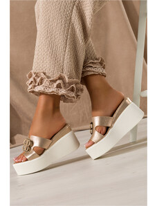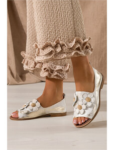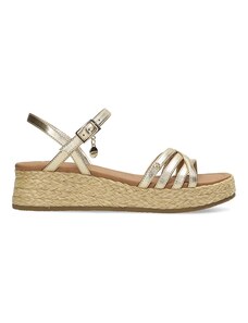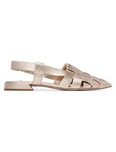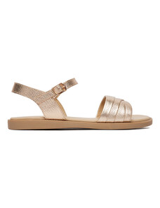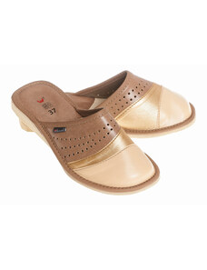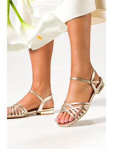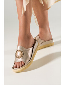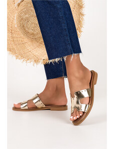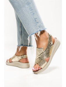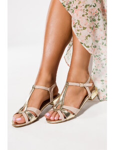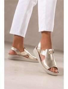 Wygodne Obuwie Damskie Sandały Złote Płaski Złoty Obcas Skóra naturalna 207 ElitaBut