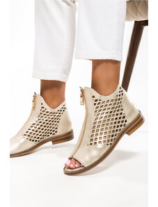 Złote botki skórzane wiosenne damskie ażurowe podeszwa ozdobiona cyrkoniami PRODUKT POLSKI Casu 977-L-CR