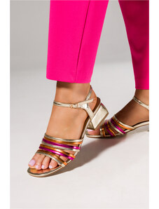 Fuksjowe sandały damskie na ozdobnym klocku złote dodatki skórzana wkładka Casu ER25X1-F