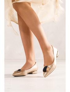 Złote baleriny skórzane damskie na niskim dekoracyjnym obcasie z ozdobą PRODUKT POLSKI Casu 2643-703