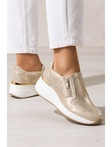 Złote sneakersy damskie ażurowe sportowe półbuty na koturnie ażurowe ze złotymi dodatkami skórzana wkładka Casu JW25X8-G