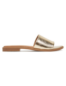 Złote klapki skórzane damskie błyszczące płaskie z ozdobną podeszwą PRODUKT POLSKI Casu 40326