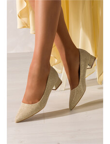 Złote czółenka damskie szpilki brokatowe z cyrkoniami obcas kieliszek odkryta pięta Carla UB64-1