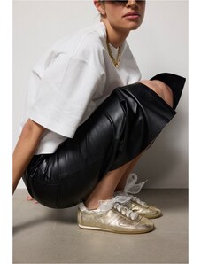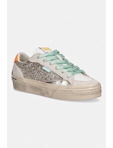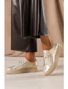 Złote sneakersy skórzane damskie buty sportowe przecierane na platformie z kłódką sznurowane PRODUKT POLSKI Casu 1145