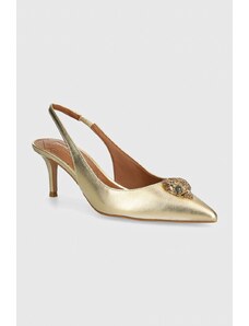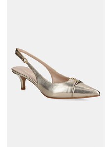 Złote czółenka skórzane damskie z odkrytą piętą transparentna wstawka ozdobne serce z kryształkami PRODUKT POLSKI Casu 7126-291