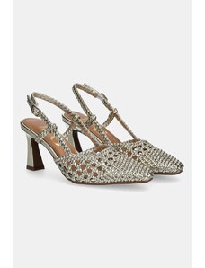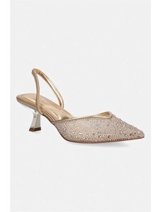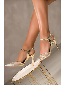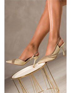 Złote czółenka damskie szpilki z siateczką ozdobione cyrkoniami odkryta pięta Carla N876
