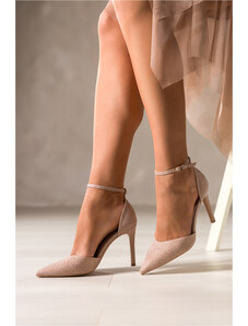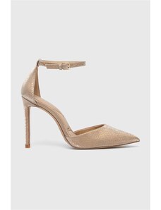 Szampańskie czółenka damskie szpilki brokatowe z zakrytą piętą pasek wokół kostki Carla TT-870K