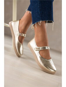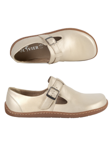 Buty barefoot damskie skórzane półeleganckie z paskiem – Olivier ROSA złote