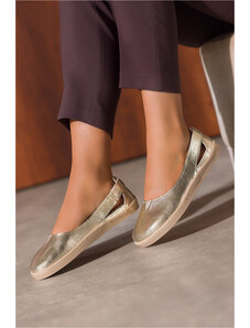 Szerokie baleriny barefoot damskie skórzane Olivier Flow – anatomiczne baleriny z wycięciem złote