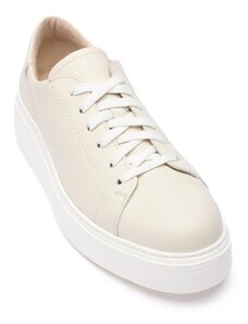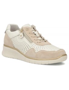 Skórzane sneakersy damskie na koturnie ażurowe beżowe Filippo DP7605
