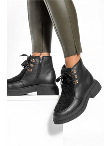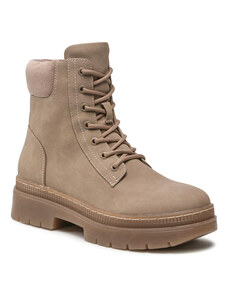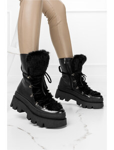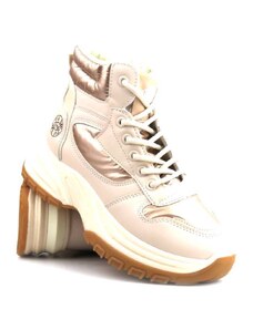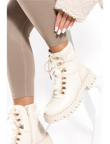 Beżowe botki śniegowce damskie z kożuszkiem sznurowane Casu 22-15