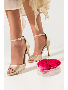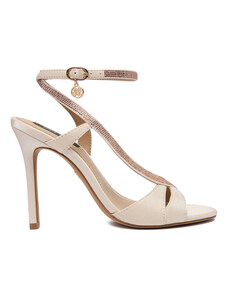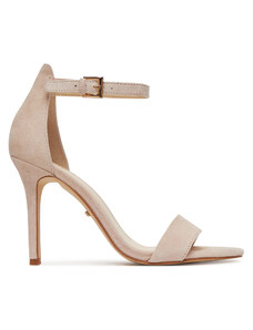 Beżowe sandały skórzane damskie szpilki t-bar z zakrytą piętą PRODUKT POLSKI Casu 7118-794