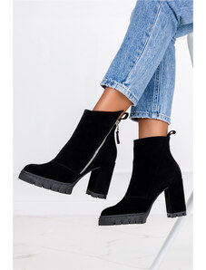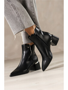 Czarne botki na słupku z ozdobnym suwakiem POLSKA SKÓRA Casu 2509-500