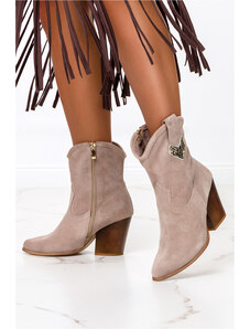 Beżowe botki damskie kowbojki haftowane Casu JW24X19-K