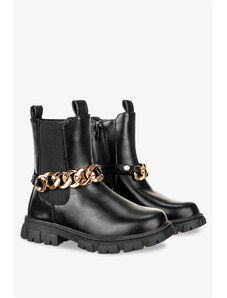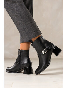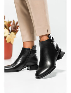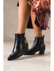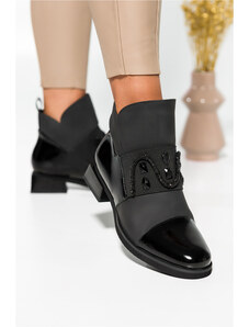 Czarne botki skórzane damskie na ozdobnym niskim klocku dekoracja Casu SL24X5-B