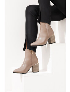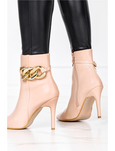 Beżowe botki na słupku damskie z ozdobą Casu G22WX15-BE