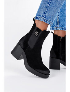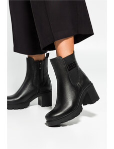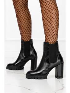 Czarne botki na słupku z gumami po bokach POLSKA SKÓRA Casu 2495-100