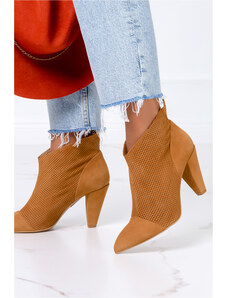 Camelowe botki wiosenne ażurowe na obcasie POLSKA SKÓRA Casu 08693