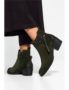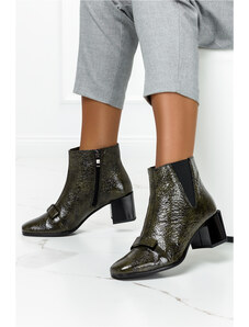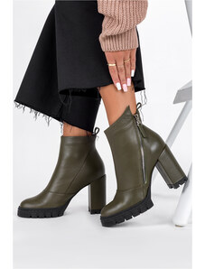 Oliwkowe botki skórzane damskie na słupku z ozdobnym suwakiem PRODUKT POLSKI Casu 2509-195