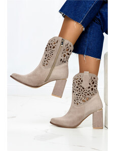 Beżowe botki skórzane ażurowe na ozdobnym słupku PRODUKT POLSKI Casu 3264