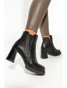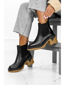 Czarne botki skórzane na platformie z gumkami po bokach PRODUKT POLSKI Casu 8195