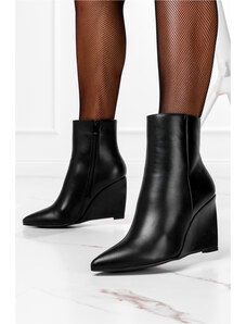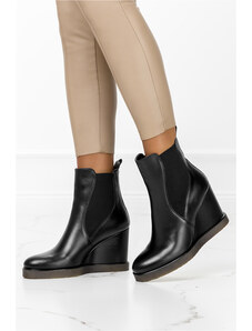 Czarne botki skórzane na koturnie z gumkami po bokach PRODUKT POLSKI Casu 2458