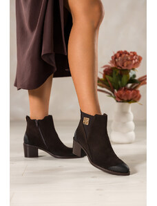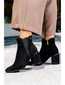 Czarne botki damskie z gumą na ozdobnym obcasie Casu D212X10-B
