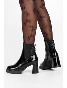 Czarne botki skórzane damskie lakierowane na klocku z gumką PRODUKT POLSKI Casu 60440