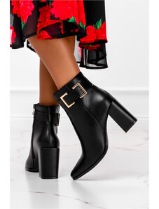 Czarne botki damskie na ozdobnym klocku pasek z cyrkoniami Casu BC24X3-B