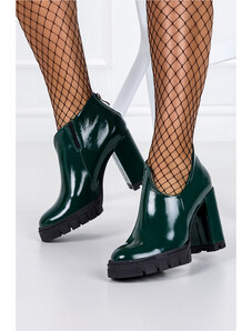Zielone botki skórzane lakierowane damskie na słupku z wycięciem na kostce PRODUKT POLSKI Casu 2647-628