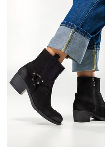 Czarne botki damskie na szerokim klocu ze srebrną ozdobą na cholewce stalowe kółeczko Casu D25WX1-B