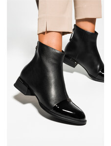 Czarne botki skórzane lakierowane damskie na słupku z wycięciem na kostce PRODUKT POLSKI Casu 2647-600
