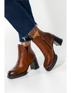 Brązowe botki skórzane damskie na szerokim klocku i platformie z gumą PRODUKT POLSKI Casu 60506