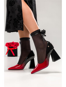 Czerwone czółenka damskie lakierowane ombre na geometrycznym obcasie ze skórzaną wkładką Casu ER24WX2-BR