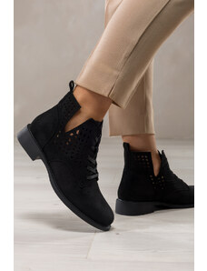Czarne botki damskie ażurowe z wycięciami sznurowane Casu JW25X15-B
