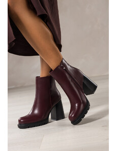 Bordowe botki damskie z gumą na ozdobnym obcasie z wzorem wężowym ze złotymi dodatkami Casu D212X10-R
