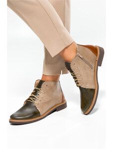 Zielone botki skórzane damskie z ozdobnymi wycięciami sznurowane PRODUKT POLSKI Casu 4078-HOGL EVA