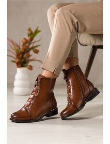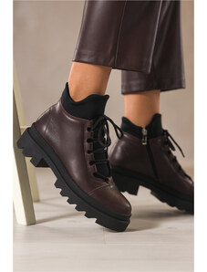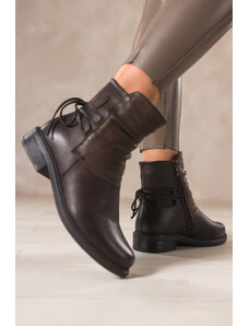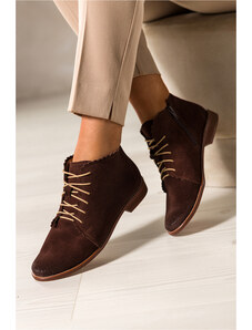 Czekoladowe botki skórzane damskie z ozdobnymi wycięciami sznurowane PRODUKT POLSKI Casu 5921-SLTO H