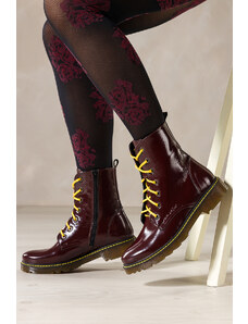 Bordowe botki skórzane damskie lakierowane glany na bieżnikowanej podeszwie z przeszyciami sznurowane PRODUKT POLSKI Casu 7293-ELTZ