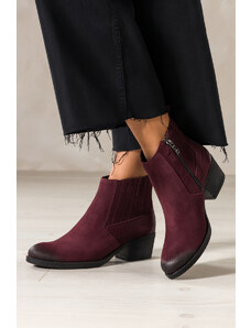 Bordowe botki skórzane damskie kowbojki na szerokim ściętym klocku guma w cholewce PRODUKT POLSKI Casu 39455