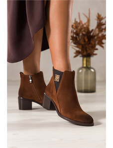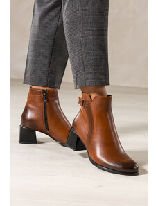 Brązowe botki na słupku z ozdobnym suwakiem POLSKA SKÓRA Casu 2509-523