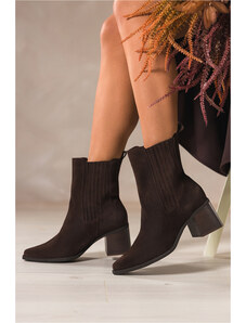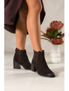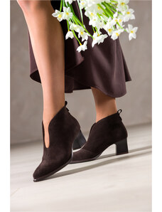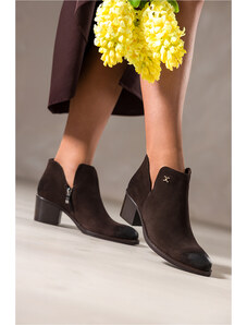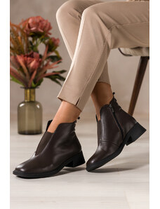 Czekoladowe botki skórzane damskie na niskim obcasie wycięta cholewka z elastyczną gumą PRODUKT POLSKI Casu 380
