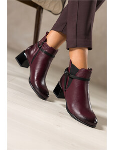 Bordowe botki skórzane damskie na ozdobnym klocku na cholewce pasek z ozdobą PRODUKT POLSKI Casu 39436